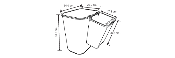 | • MEDIDAS BOTE CHICO LARGO : 24.5 CM ANCHO : 17.8 CM ALTO : 26.3 CM • MEDIDAS BOTE GRANDE LARGO : 34.0 CM ANCHO : 26.2 CM ALTO : 38.0 CM |