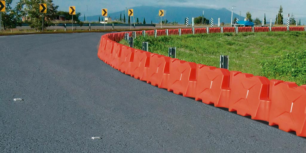 Económica y resistente barrera usada como canalizador o separador de carriles en zonas de obra y carreteras.