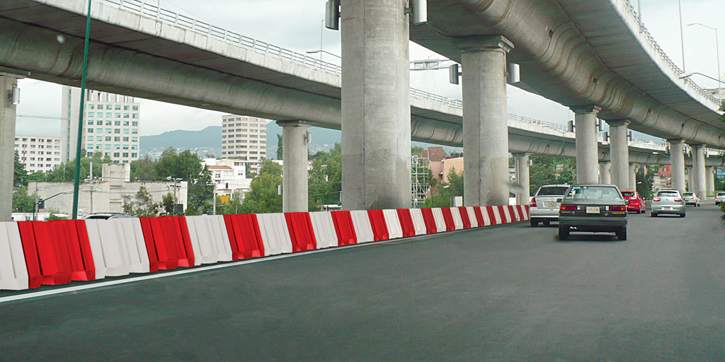 Barrera de diseño exclusivo, más alta para mejorar la protección en desviaciones causadas por obras o percances, útil también para separar carriles.