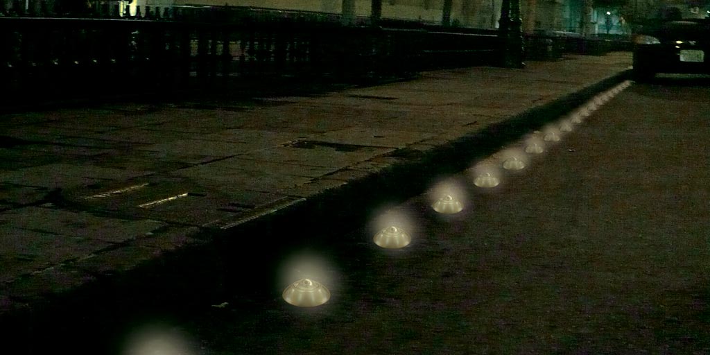 Botones fabricados en acero inoxidable lámina calibre 18, ideales para estacionamientos de lujo y cuya cualidad principal es la esfera de vidrio templado cuya incidencia de luz es visible desde cualquier ángulo logrando una reflectividad total.