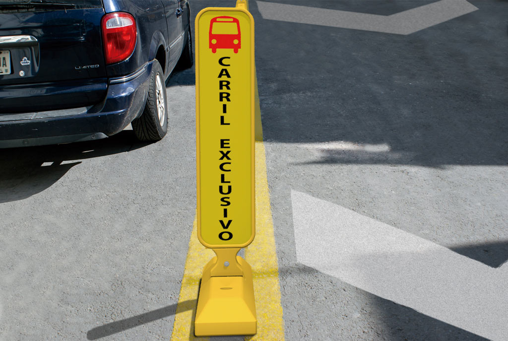 Se emplea para canalizar carriles, en zonas de acceso restringido, cuchillas o desvíos.