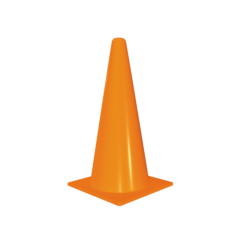 Cono semiflexible fabricado en polietileno de alta densidad de una sola pieza en color naranja flourescente.