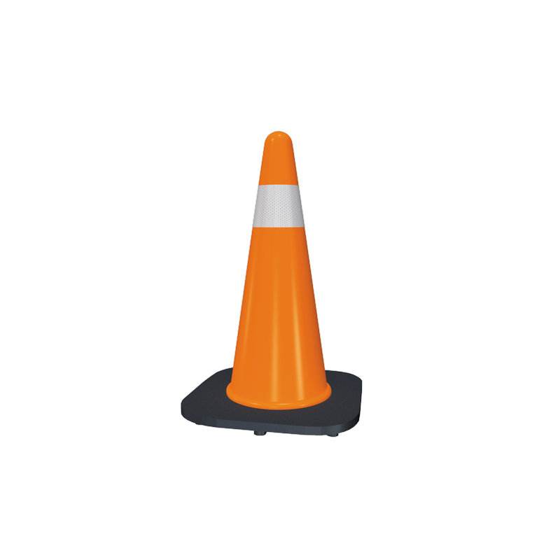 Conos fabricados en PVC Superflexible con la capacidad de recuperar totalmente su forma original después de ser atropellados, llevan base especial para proporcionarles estabilidad en condiciones de lluvia o viento.