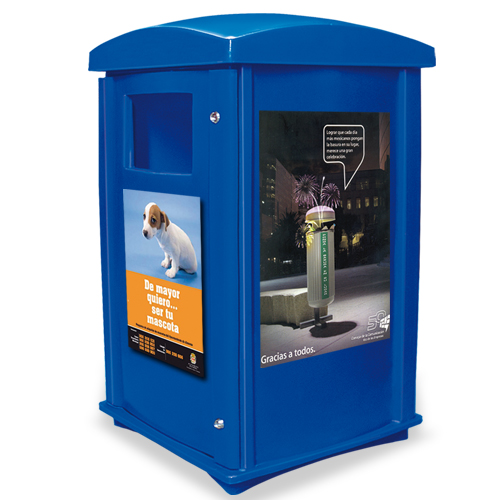 | • FABRICADO EN POLIETILENO DE MEDIA DENSIDAD. • CON ESPACIO PARA PROMOCIONES O CAMPAÑAS PUBLICITARIAS. • CAPACIDAD PARA 320 LT. |