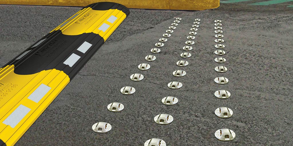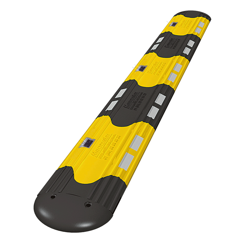 Resistente y durable reductor, fabricado en piezas modulares ensamblables, útil para colocarse en pasos peatonales o avenidas dónde sea necesario controlar la velocidad del flujo vehícular.